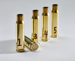 Five Peterson .308 cases after 32 firings. Cases were polished to help detect any cracks - none were found.
